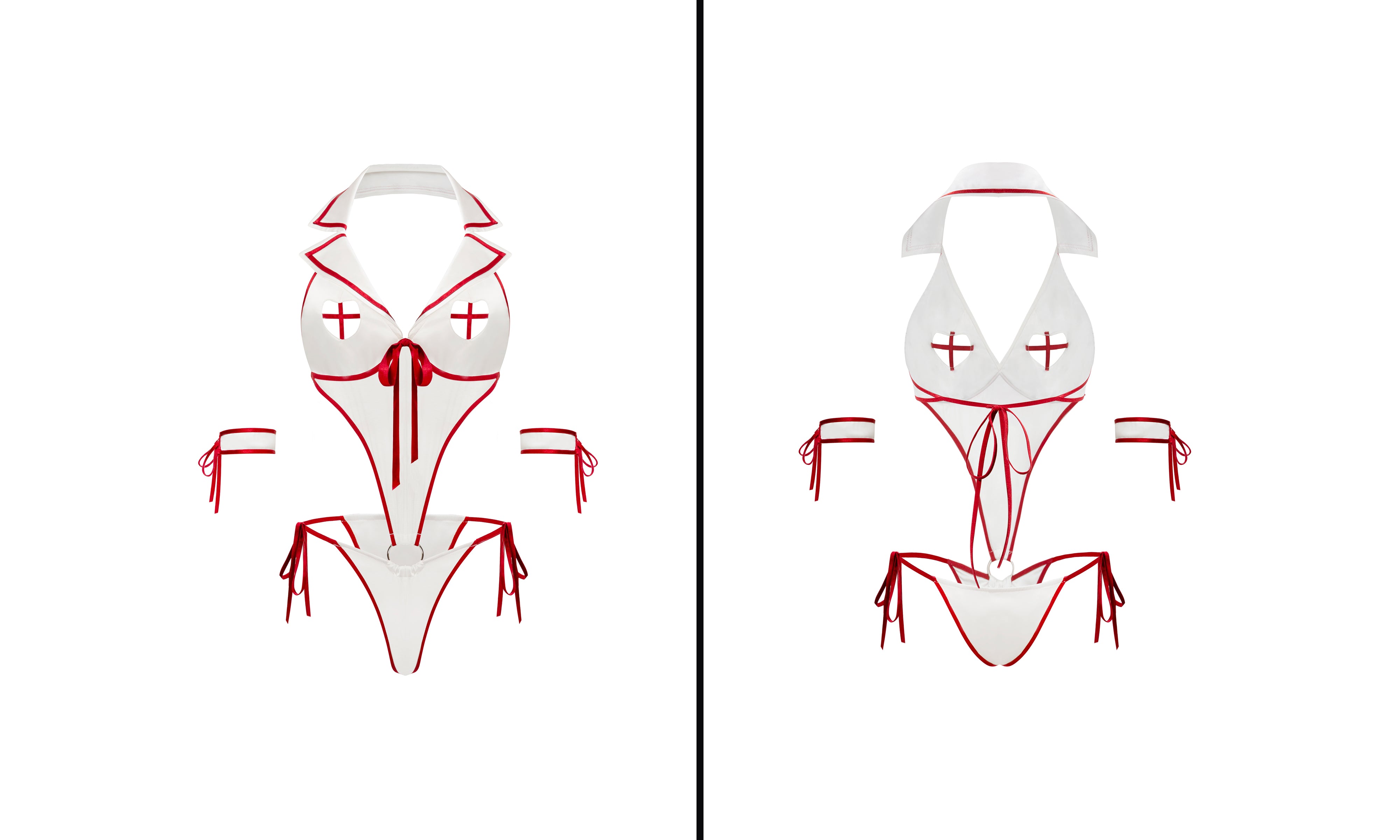 Sheer Cut-Out Nurse Lingerie Bodysuit with Tie-Side Panty & Arm Bands - PDCP0050