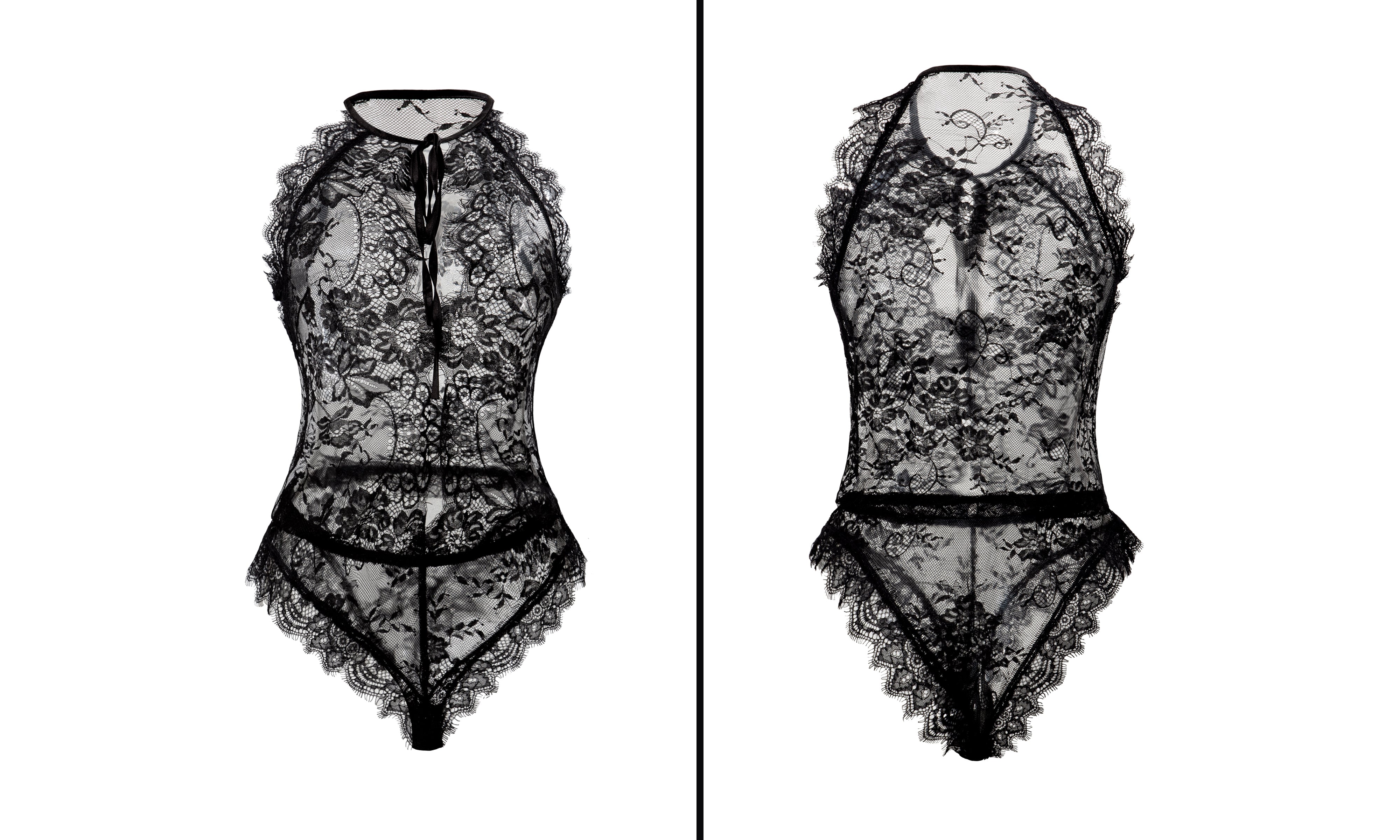 The Noir Whisper Lace Bodysuit combines elegant lace with alluring sheer details for a refined yet seductive look. Lightweight transparent lace softly reveals the skin, creating a delicate balance between coverage and temptation.